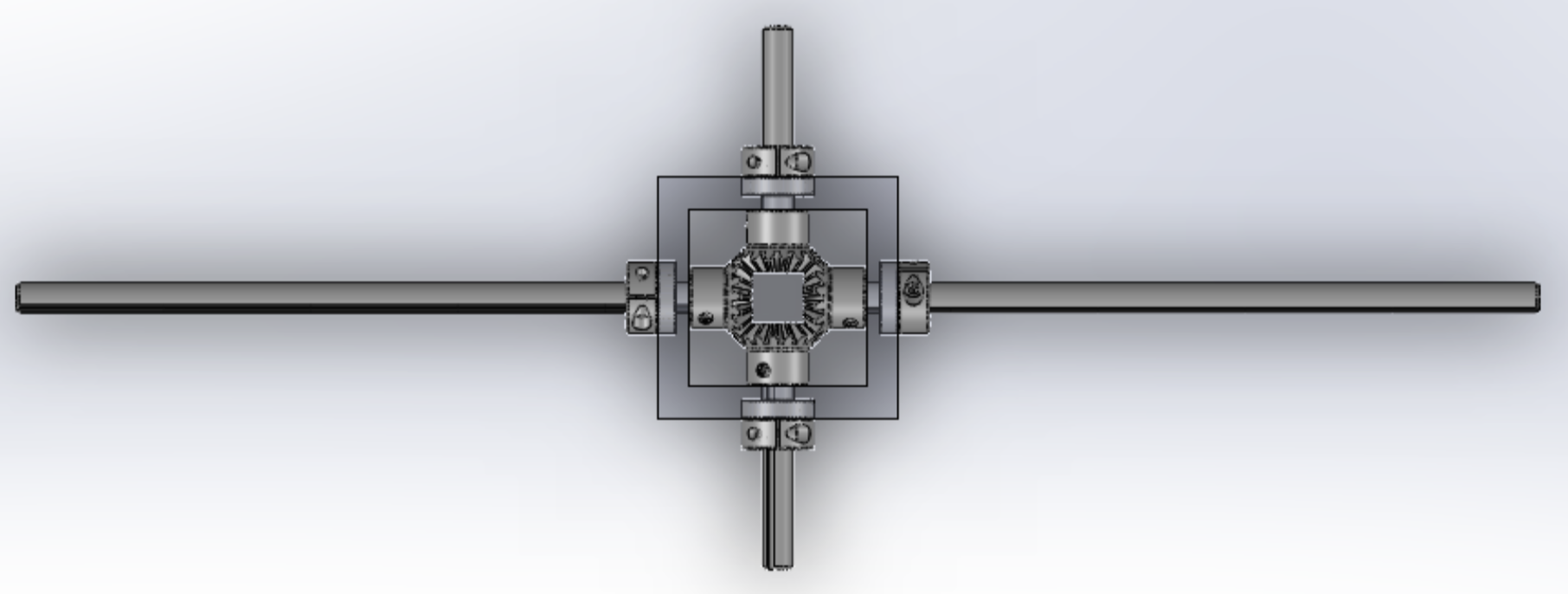 This is a design of a differential gearbox that is capable of leveling the chassis as the rover traverses uneven terrain. The differential gearbox is made out of aluminum, and the shafts are made out of steel. Four bevel gears, made out of steel, are also used in the process of design. The gearbox will be mounted below the chassis to lower the center of gravity.