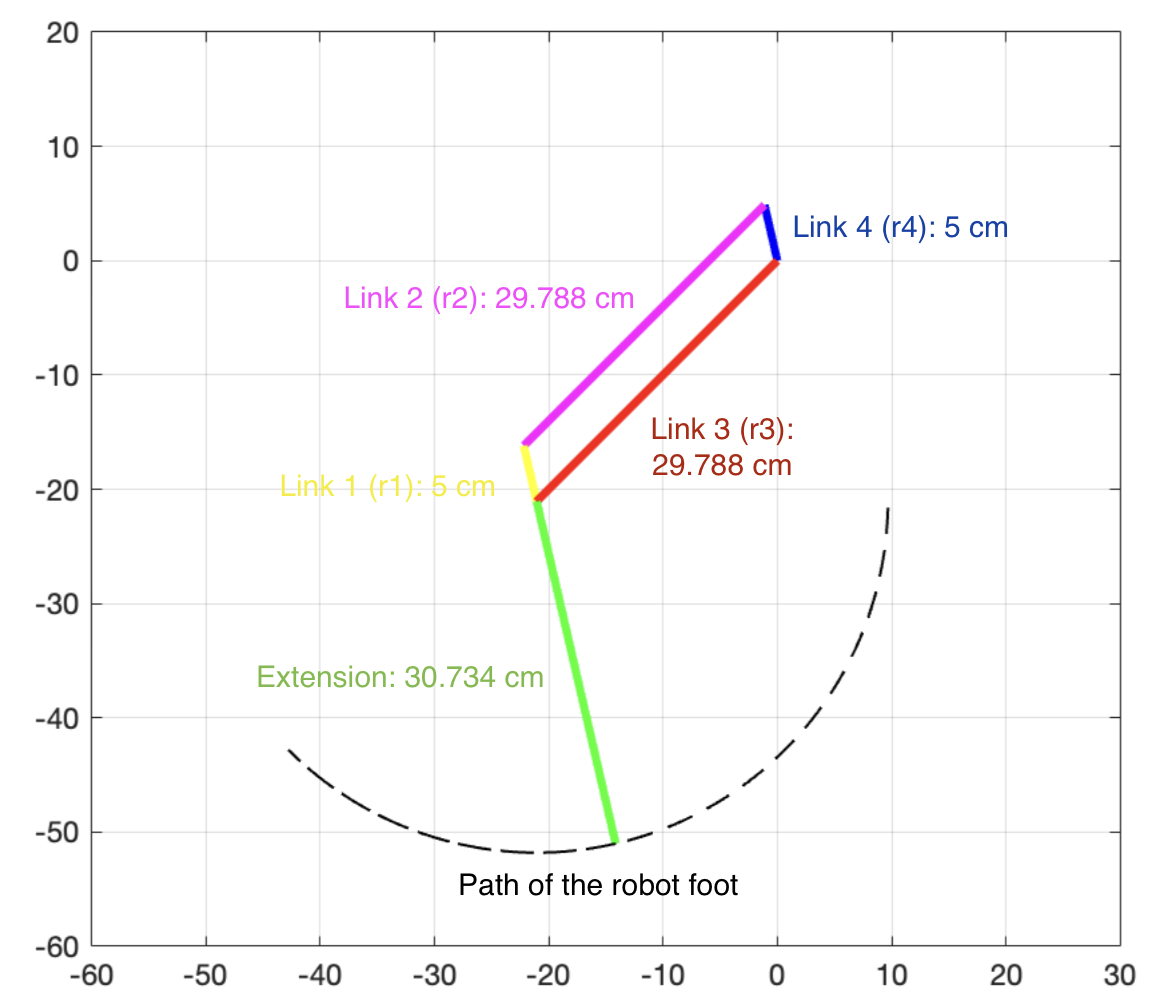 Robot leg diagram with movement path